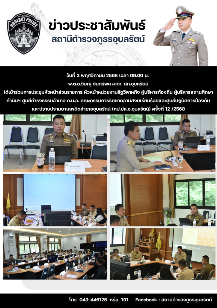 วันนี้ 24 เมษายน 2568เวลา 09.00 น ภายใต้การอำนวยการของพ.ต.อ.วิษณุ จันทร์พล ผกก.ฯให้ พ.ต.ท.อุกฤษฎ์ ดว