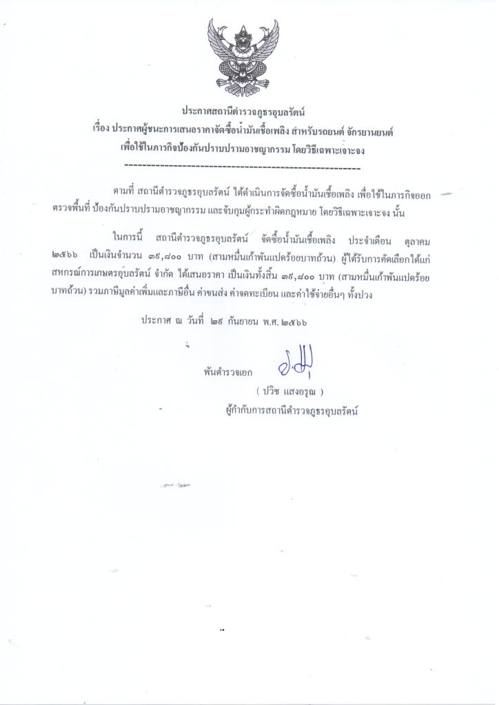 ประกาศผู้ชนะการเสนอราคาน้ำมันเชื้อเพลิง โดยวิธีเฉพาะเจาะจง