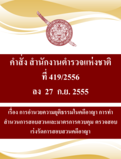 คำสั่งสำนักงานตำรวจแห่งชาติ ที่ ๕๓๘/๒๕๕๕ เรื่อง การปฏิบัติและอำนาจหน้าที่ความรับผิดชอบของพนักงานสอบสวนและผู้ปฏิบัติงานสอบสวน